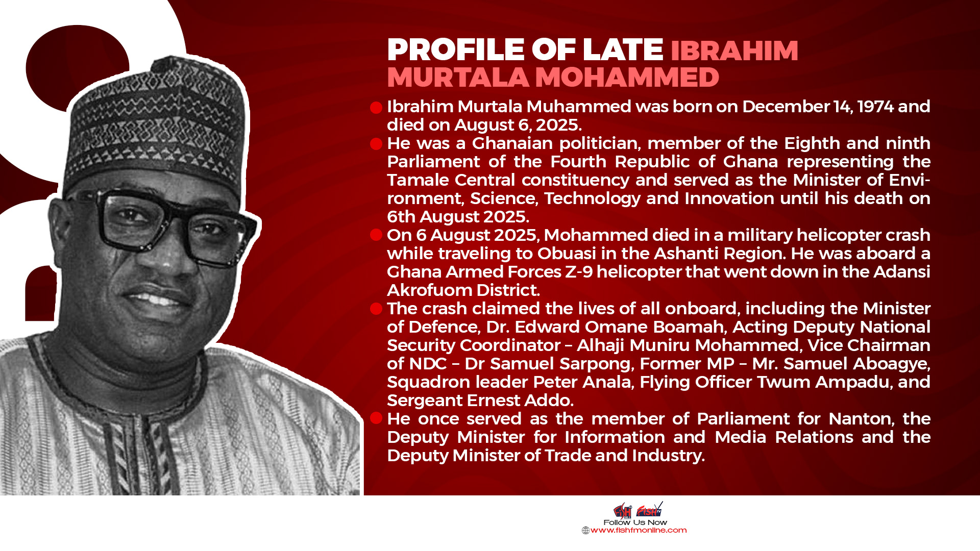 Ibrahim Murtala Muhammed was born on December 14, 1974 and died on August 6, 2025.