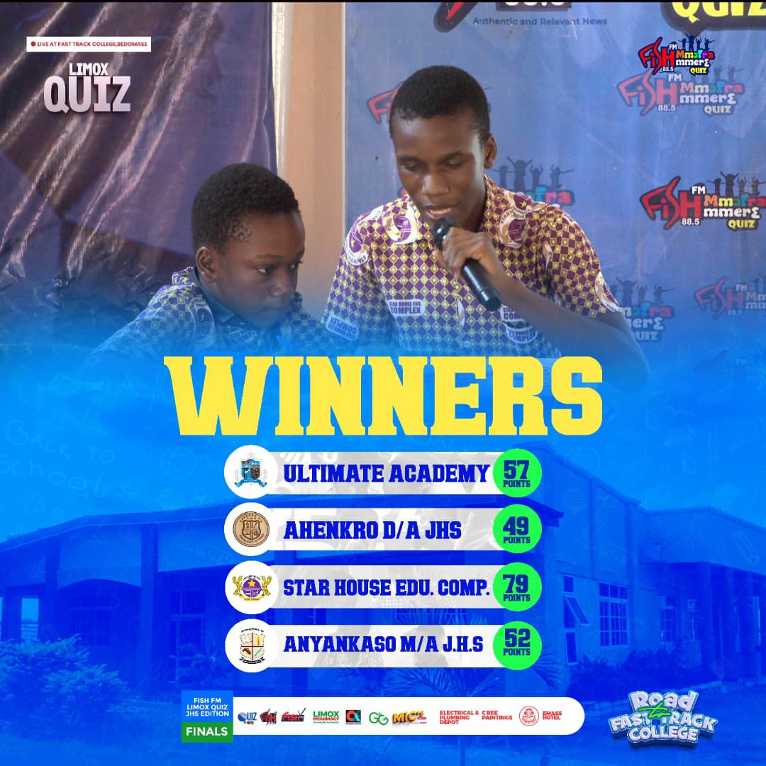 In a thrilling display of knowledge and teamwork, Star House Educational Complex from Offinso Municipality has emerged victorious in the FISH MMƆFRA MMERƐ QUIZ grand finale, held at Fast Track College, Bedomase, Agona.