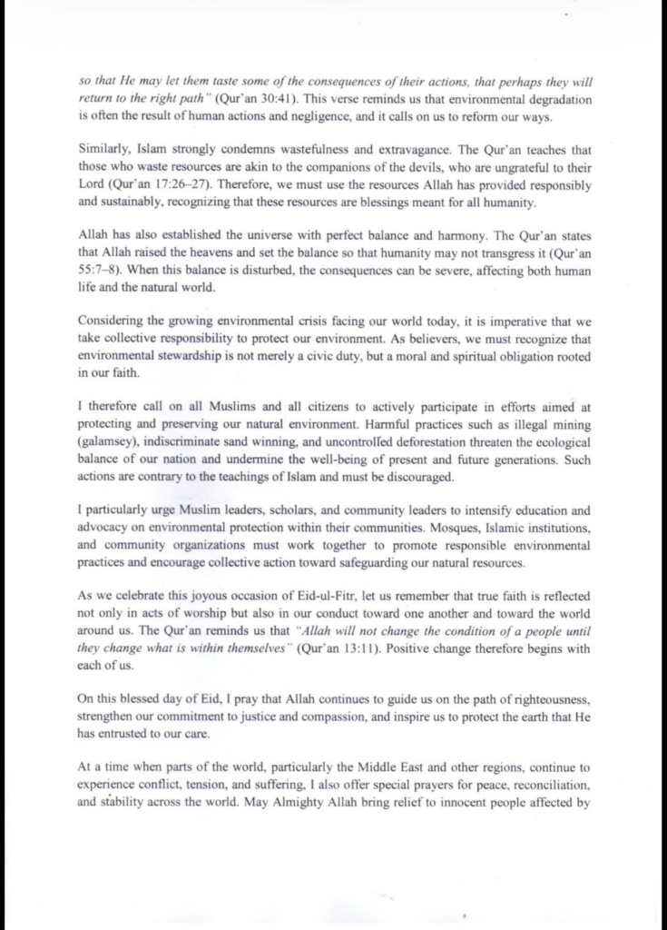 The Office of the National Chief Imam has urged Ghanaians to renew their spiritual commitment alongside taking urgent action to safeguard the environment.